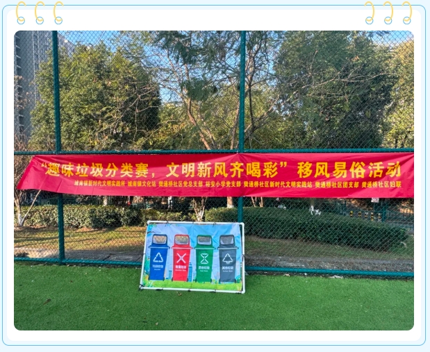 运动场上一片欢腾!今天,裕安小学与樊通桥社区携手举办了一场别开生面的“趣味垃圾分类赛”,孩子们的笑声与欢呼声此起彼伏,文明新风吹遍校园每个角落。