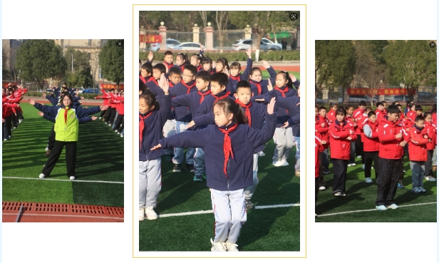 四年级的同学们精神抖擞,动作流畅有力,成为赛场上一道亮丽的风景。伴随明快的节奏,他们抬手、转身、踢腿、跳跃,整齐划一,协调如一人。队列行进时步伐铿锵,动作展示时舒展大方,将集体的凝聚力与运动的热情融入每一个细节,传递出奋发向上的正能量。