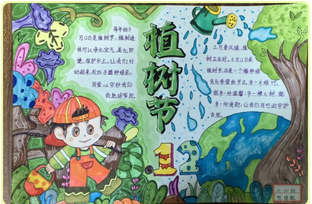六年级的大哥哥大姐姐们则以 “植树节” 为主题,精心绘制了一幅幅内容丰富、版面精美的手抄报。他们用手中的画笔,描绘出心中绿色的蓝图,书写着对生态环境的关注和对美好未来的憧憬。