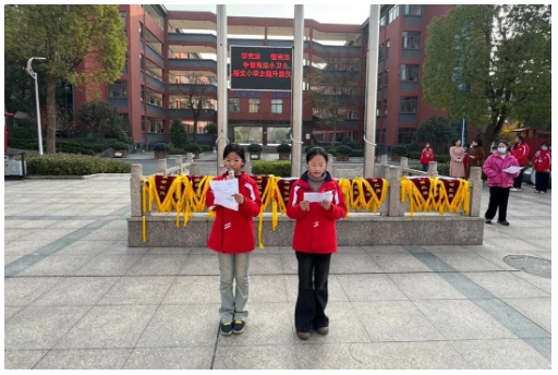 每周一的升旗仪式是广播站成员最重视的时刻之一。当《义勇军进行曲》响起时,主持升旗仪式的小播音员们站得笔直,声音洪亮而庄严:“升旗仪式现在开始!全体师生行注目礼,少先队员行队礼!”