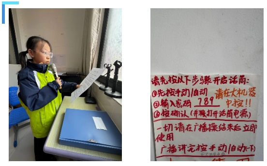 “每次使用前要检查设备是否正常,使用话筒时要保持适当距离,结束广播后要按正确顺序关闭设备……”这些操作规范,广播站的每一位成员都牢记于心。