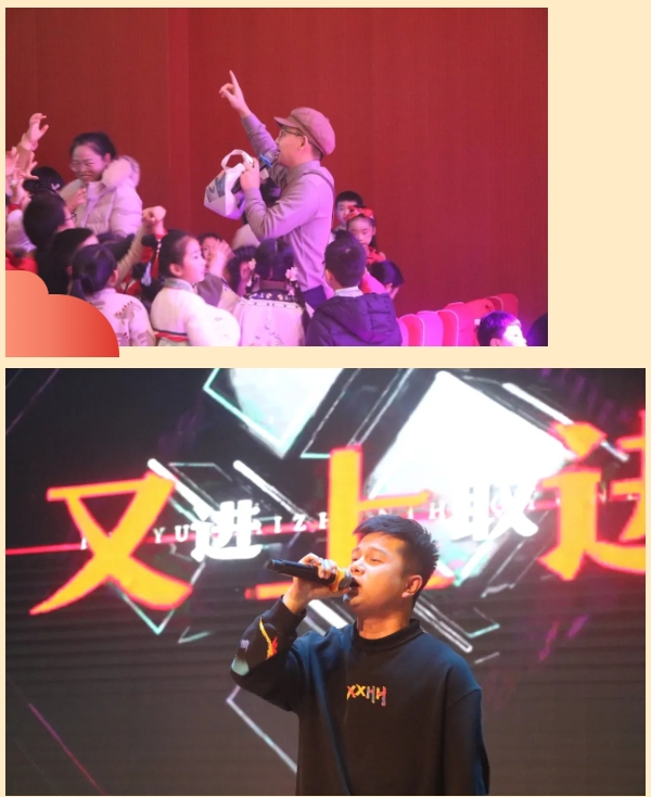 展演尾声,现场氛围迎来又一个温馨高潮。黄建磊老师和王心宇老师登台献唱《好运来》和《大王叫我来巡山》,轻快的旋律与真挚的祝福交织,老师们走到学生中间,与孩子们亲切互动。伴随着歌声,一颗颗象征着甜蜜与祝福的糖果被送到每位小演员和观众手中,孩子们的笑脸在糖果的甜蜜中绽放,师生情谊在温馨互动中流淌。这一精心设计的环节,不仅传递了新年的美好祝愿,更体现了裕安小学“寓教于乐、师生共融”的教育理念,让文化传承充满了温度与情感。