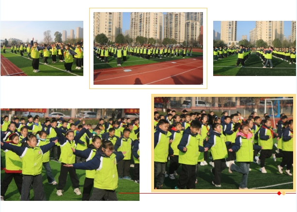四年级的同学们精神抖擞,动作流畅有力,成为赛场上一道亮丽的风景。伴随明快的节奏,他们抬手、转身、踢腿、跳跃,整齐划一,协调如一人。队列行进时步伐铿锵,动作展示时舒展大方,将集体的凝聚力与运动的热情融入每一个细节,传递出奋发向上的正能量。