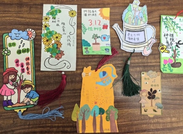 二、三年级的同学们则发挥奇思妙想,将爱绿护绿的热情倾注于小小的书签之上。他们用五彩的画笔,在卡纸上勾勒出葱郁的树木、盛开的花朵、可爱的动物,并配以 “爱护花草”“让地球更美丽” 等一句句真挚的环保标语。